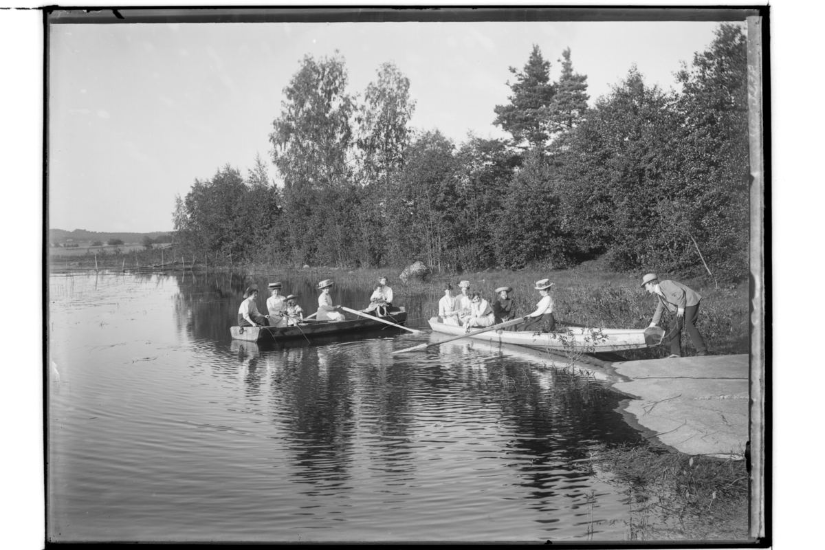 Två st ekor med 11 personer vid strandkanten.