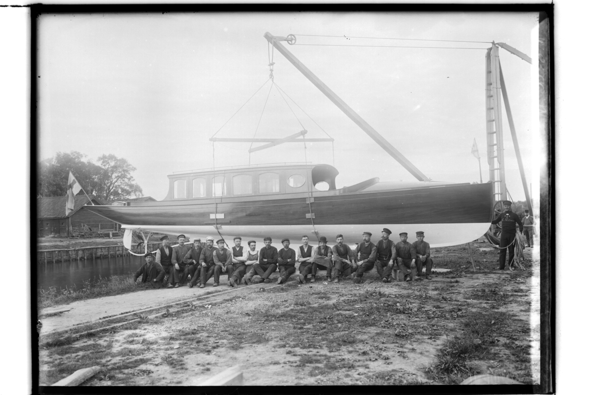 Båtbyggeri, 17 arbetare. Stor motorbåt.