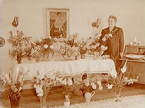 Titel: Rumsinteriör, en kvinna. Fru Asker på högtidsdagen.