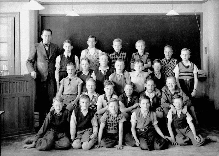 Engelbrektsskolan, klassrumsinteriör, 22 pojkar med lärare E. Fallenius.