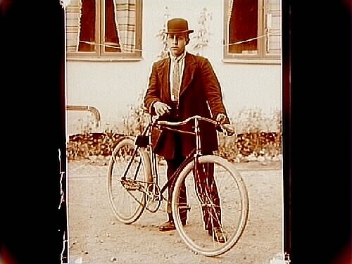 En man med cykel.
