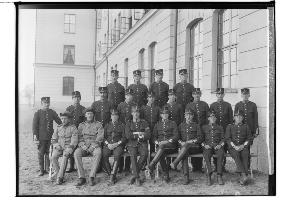 21 soldater utanför kasern.