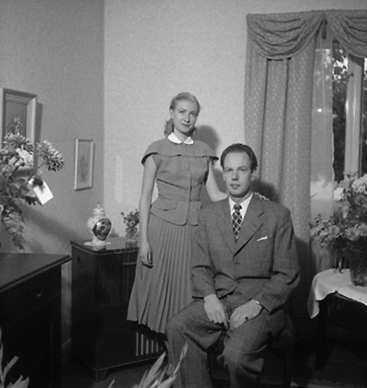 Rumsinteriör, en man och en flicka.