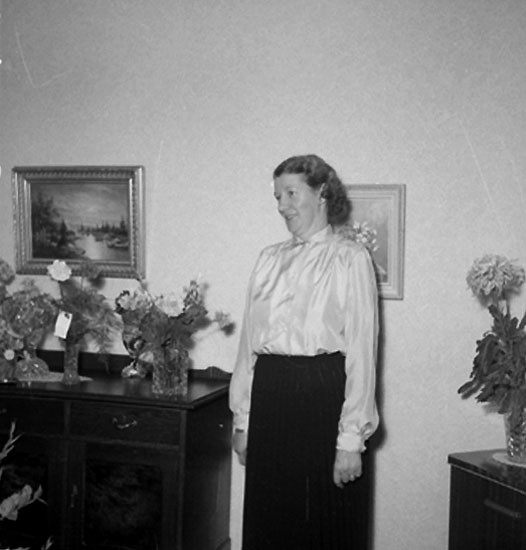 Rumsinteriör, en kvinna, högtid.