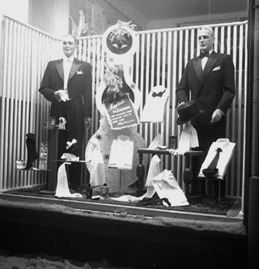Olle Johansson kläder, affärsbyggnad, skyltfönster.