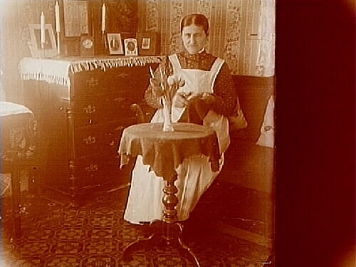 Rumsinteriör, en gammal dam.