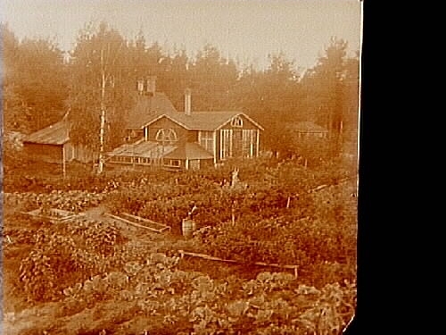 Titel: Familjebild, fabrikbyggnad. Två bilder (8x8 cm) på samma glasplåt (8x17 cm).