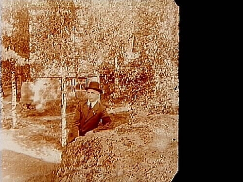Titel: Familjebild, en man. Två bilder (8x8 cm) på samma glasplåt (8x17 cm).