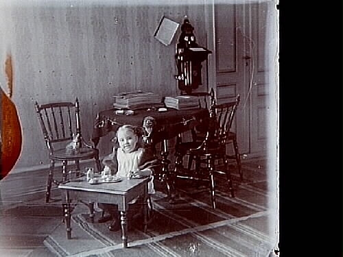 Titel: Ett litet barn. Rumsinteriör. Sam Lindskogs familjebild. Två bilder på samma glasplåt.