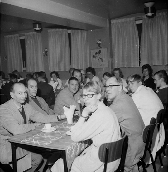 Titel: Avskedsfest för L.C. chefen Torsten Östergren, interiör, grupp.