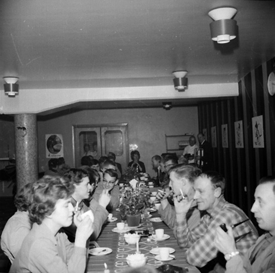 Titel: Avskedsfest för L.C. chefen Torsten Östergren, interiör, grupp.