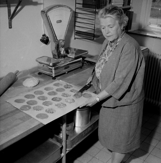 Författaren Margit Palmer-Waldén med "Kajsa Warg kakor".