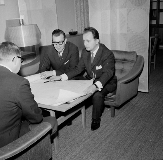 Konsum Domus stormarknad, möbelavdelningen, interiör, tre män.