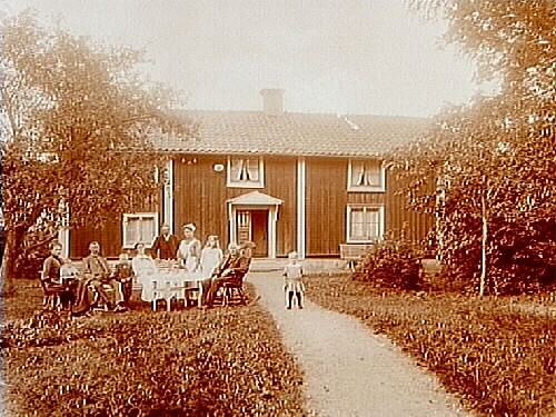 10 personer framför huset.