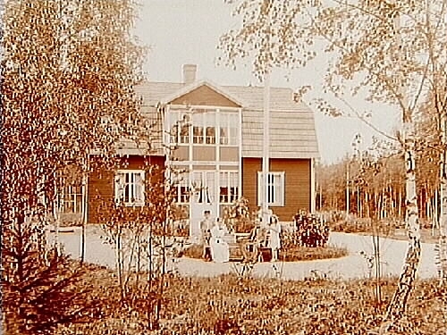 En och en halvvånings bostadshus med brutet tak, glasad balkong och veranda.