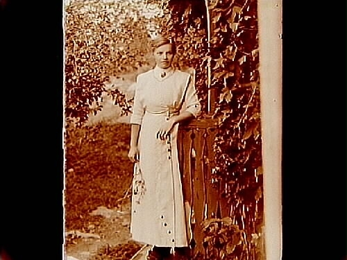 Egentligen Elisabet Sjöberg, född 5 januari 1892, i Almby fs, i torpet Helleboda. Det är vid Hellebodas förstukvist hon står på fotografiet. Hon dog 27 september 1968.