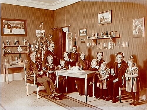 Rumsinteriör, 12 personer vid julbordet.