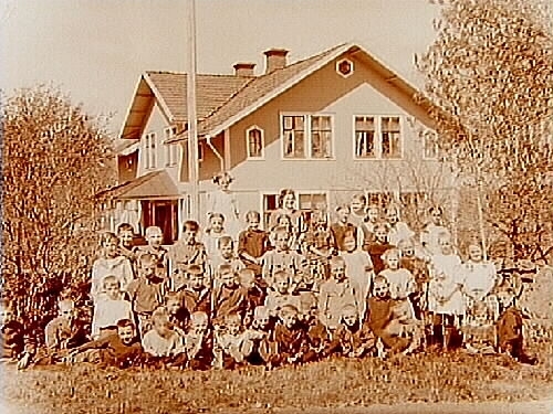 Glashyttans skolan, 45 skolbarn med lärare fröken Valborg Ekman.