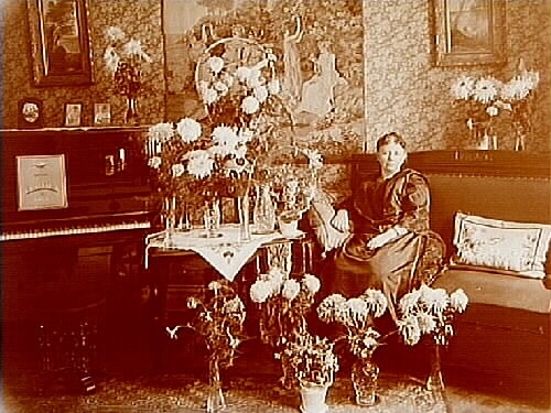 Rumsinteriör, en kvinna.