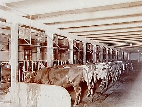 Titel: Ringaby gård. Ladugårdsinteriör, kor. Grosshandlare Erik Gustafsson