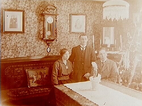 Rumsinteriör. En kvinna och två män.