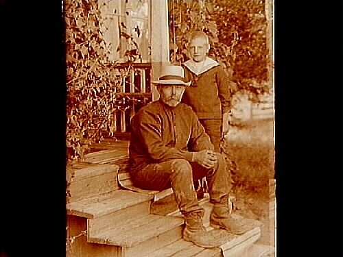 En man och en gosse på trappan.