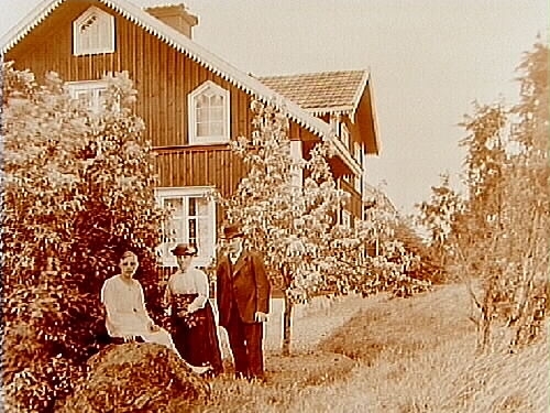 En och en halvvånings bostadshus med frontespis. Baksidan.