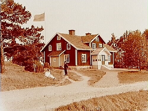 2 personer framför huset.