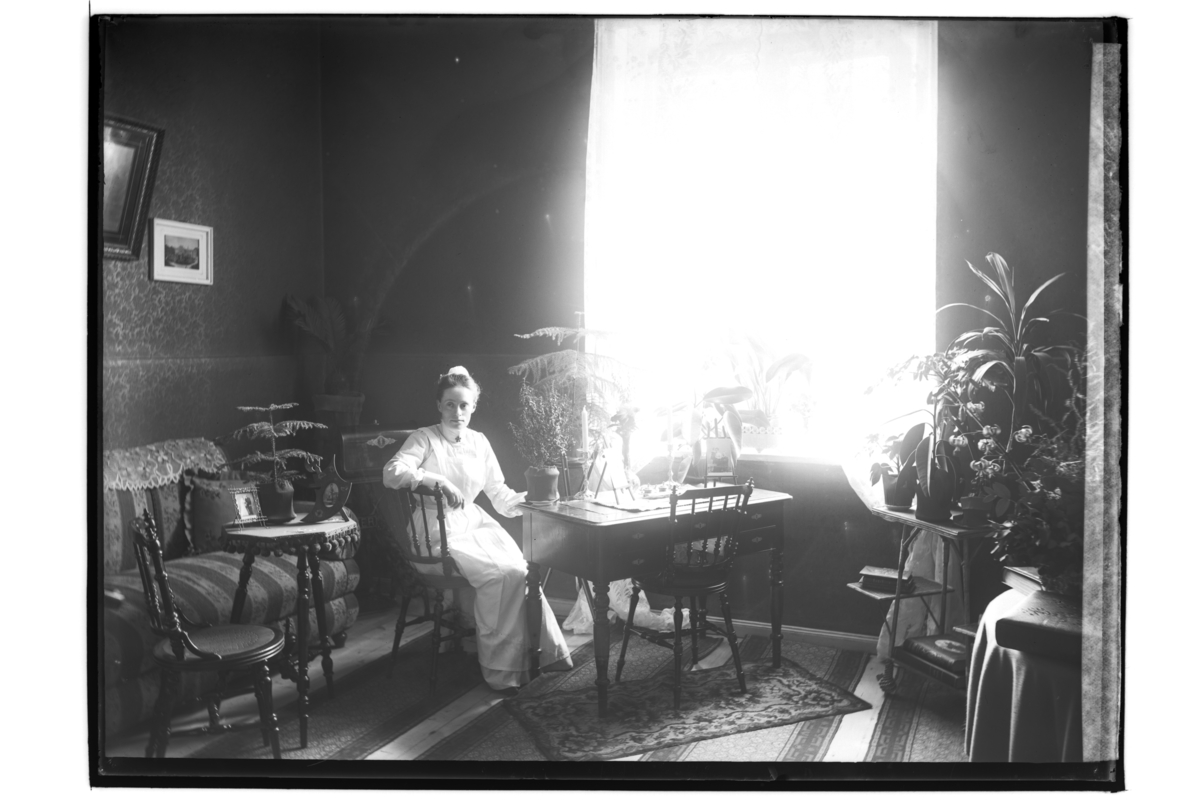 Epidemisjukhuset, rumsinteriör, en kvinna.