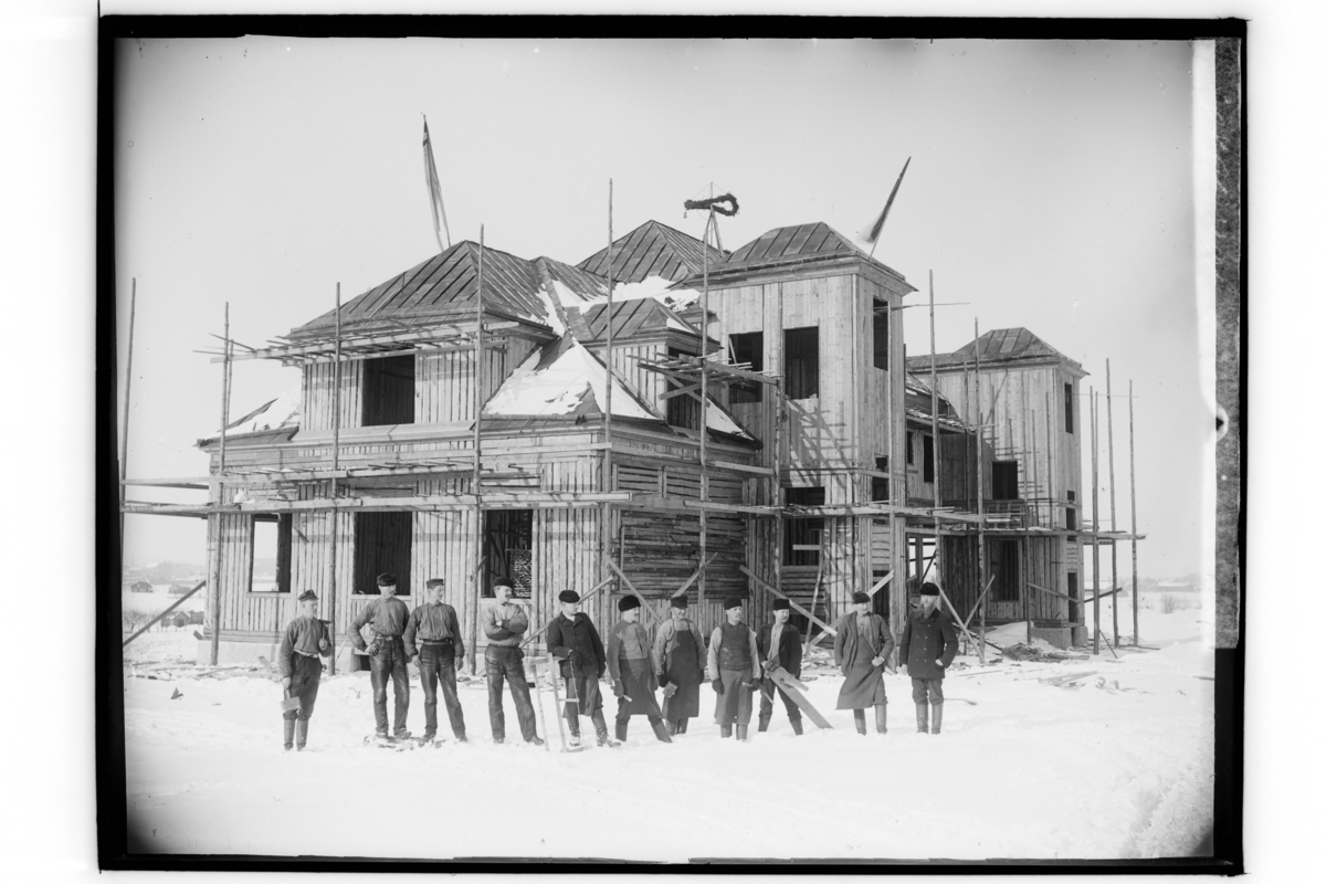 Almby nya folkskola under byggnad.