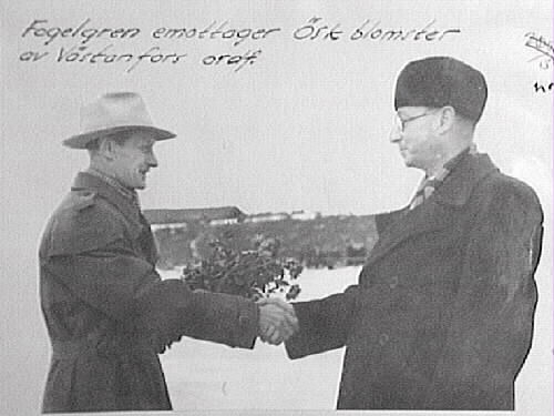 S.Fogelgren lagl i ÖSK mottager blommor av Västanfors ordf.