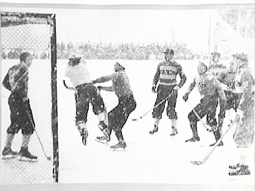 Snömatch mot Västerås SK. VSK målvakten fångar bollen framför Jojje Gustafsson.