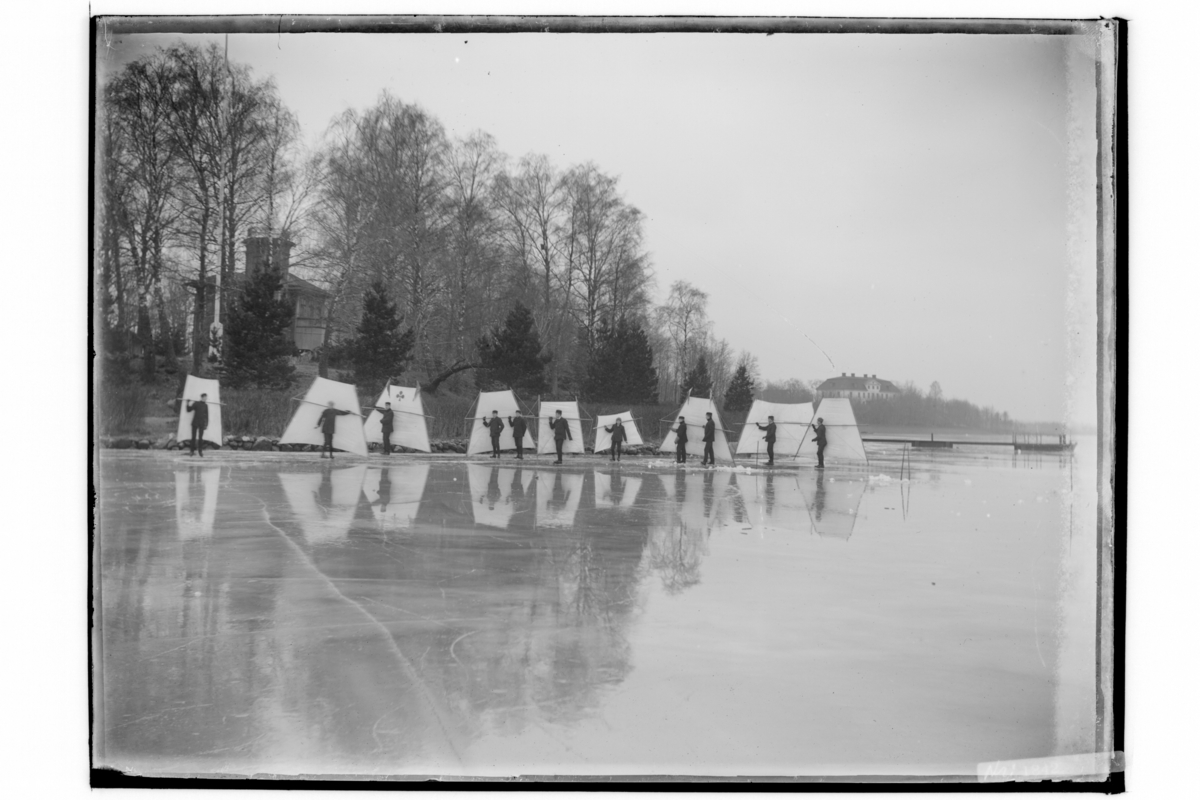 11 skridskoseglare på Hjälmaren, Hemfjärden.