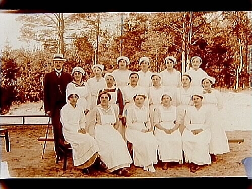 Fellingsbro Lanthushållsskola, 16 flickor med lärare.