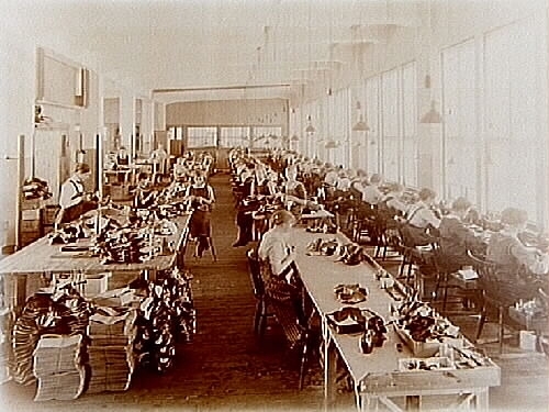 Skofabriken Engelbrekt, interiör från nåtlingen på fjärde våningen.