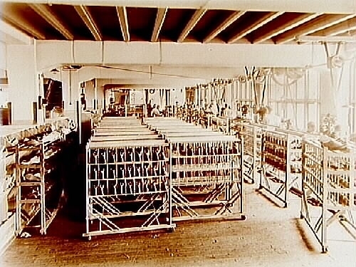 Skofabriken Engelbrekt, interiör från maskinavdelningen på tredje våningen.