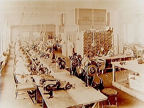 Skofabriken Engelbrekt, interiör från nåtlingen på fjärde våningen.