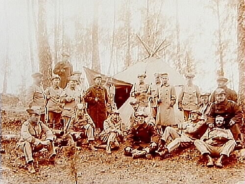 Landstormsofficerskolan, 21 landstormare framför tältet.