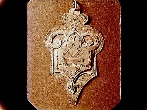 Namnplåt i silver som sitter runt Snickargesällernas välkomma, med texten: Adolf Siärman.