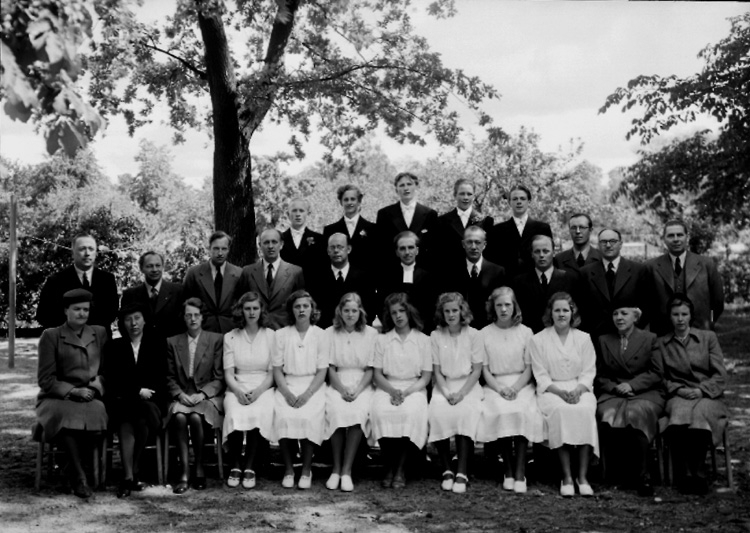 Dövstumma konfirmander, 7 flickor, 5 pojkar och pastor Svennas.