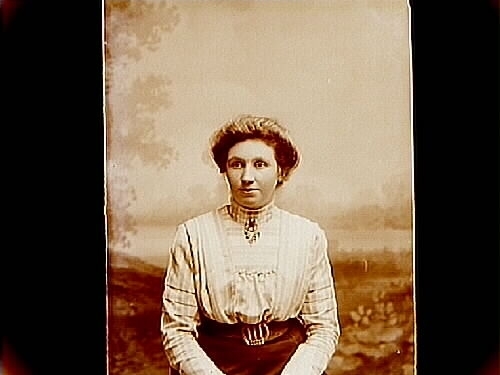 En kvinna, bröstbild, omsittning.
