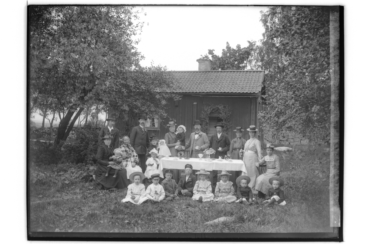 Bostadshus, 23 personer. Samling vid kaffebordet.