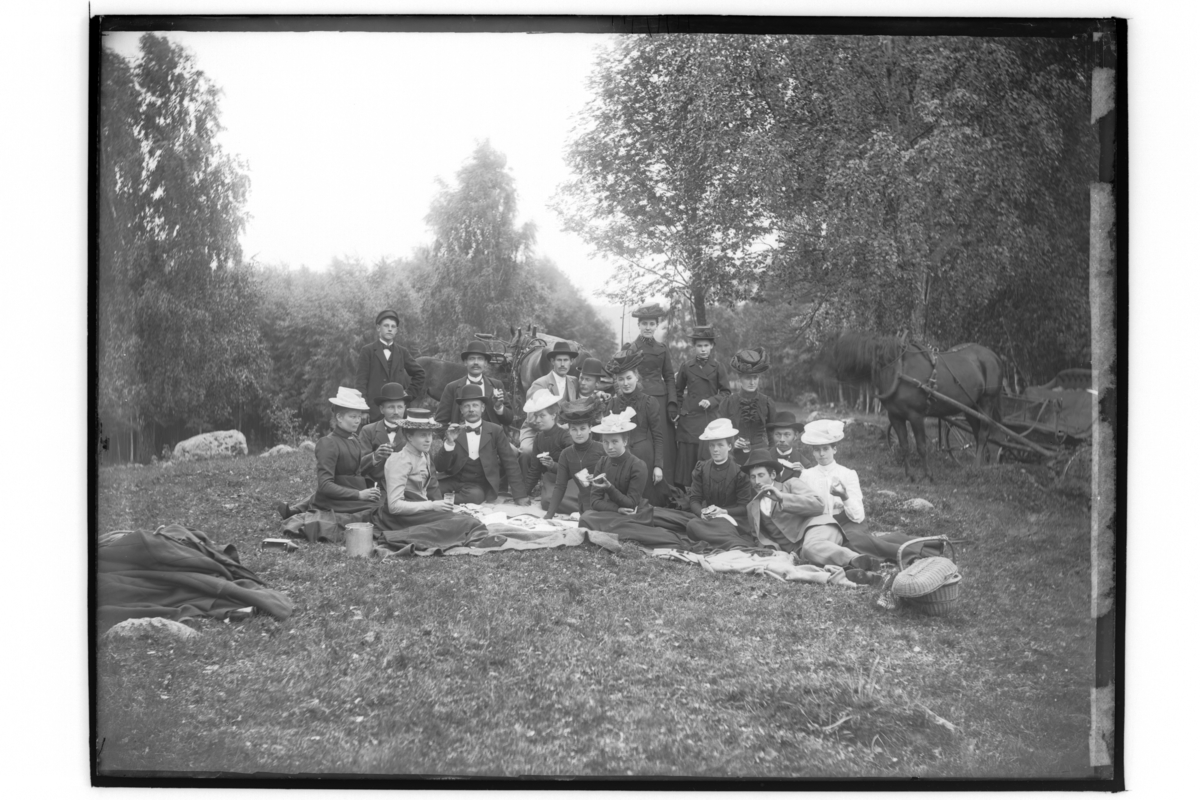 Grupp 19 personer. Utflykt i det gröna. Hästskjuts.