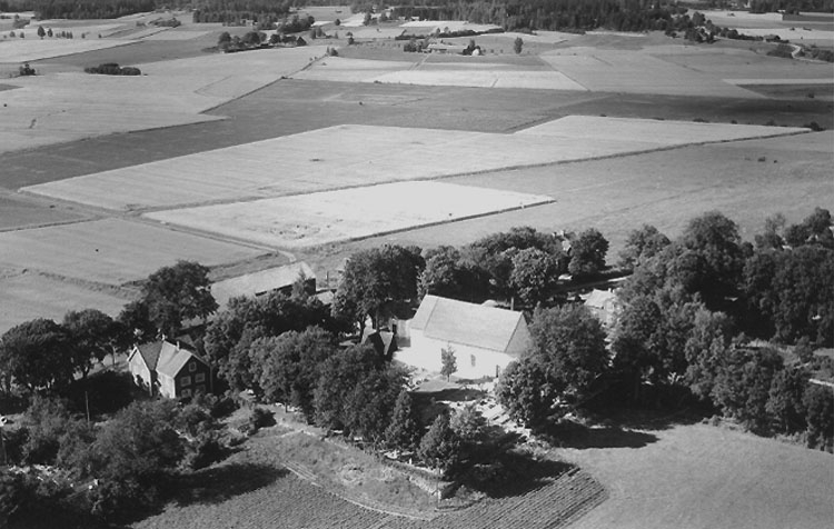 Flygfoto över Kräcklinge kyrka.