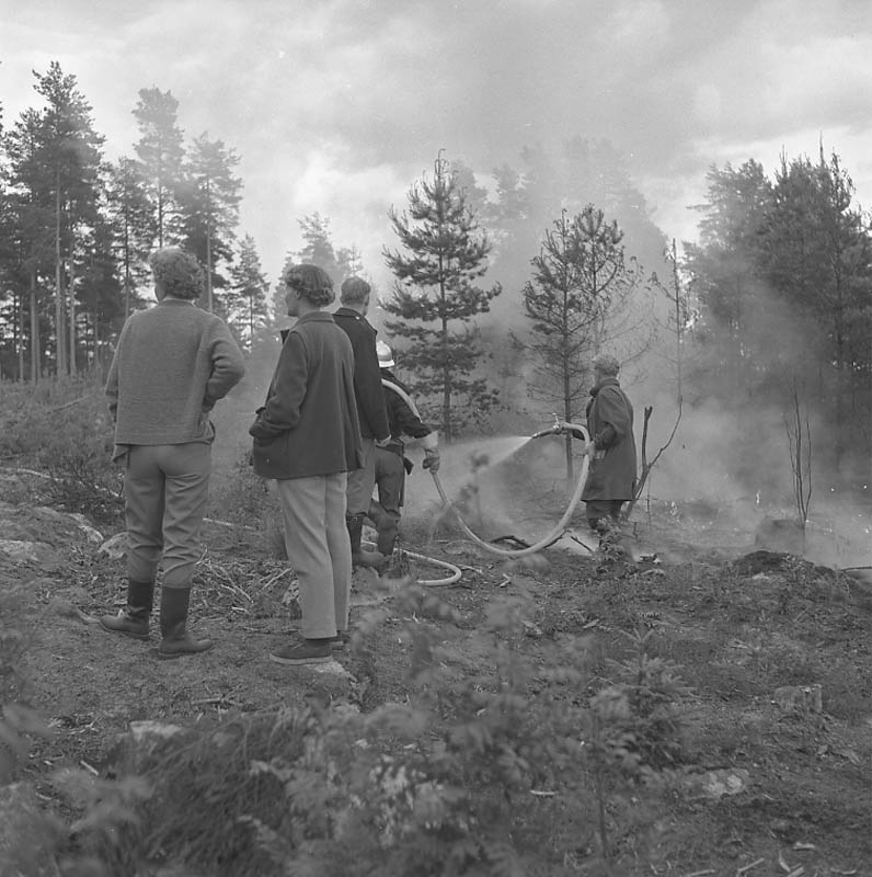Titel: Pyromanbränderna i Kopparberg den 19 juni 1961. Brandsläckning.