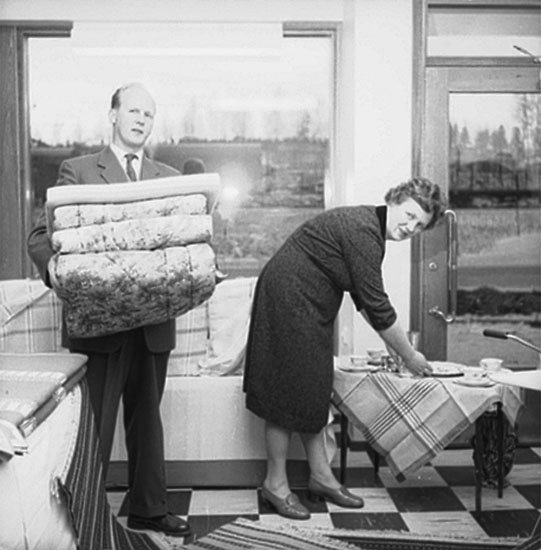 Affärsinteriör, en man och en kvinna.