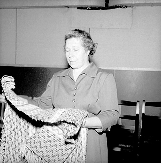 IOGT i Bångbro, interiör, en kvinna med en matta.