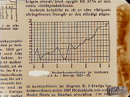 Diagram: Sockerkonsumtion per invånare och år i Sverige, åren 1907-1935.