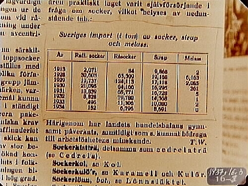 Tabell: Sveriges import (i ton) av socker, sirap och melass.