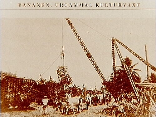 Bananodling. Text: Bananen, urgammal kulturväxt.